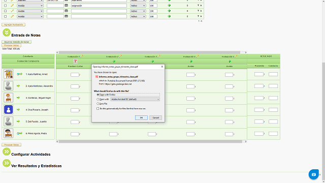 Ver el detalle de notas para un grado y grupo en particular - Paso10